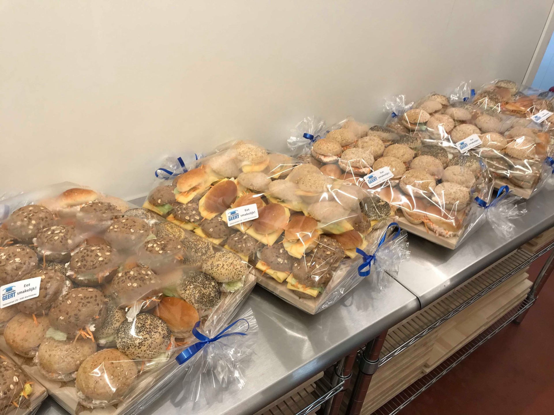 Onze mini broodjes worden vers gesmeerd en belegd met verse producten en garnituren. Er kan gekozen worden uit verschillende soorten beleg. (Keuze kan je doorgeven bij het afrekenen)